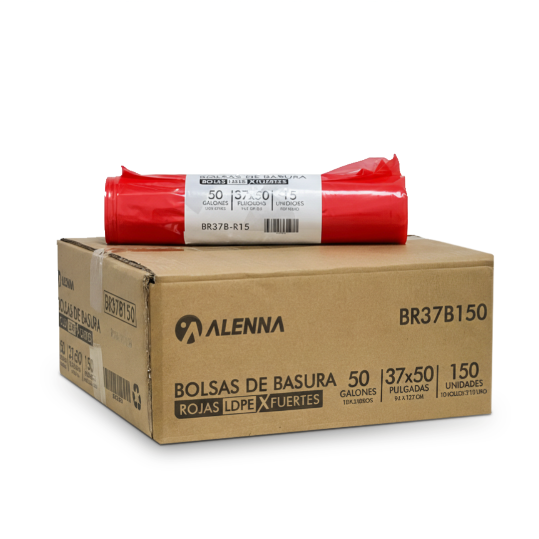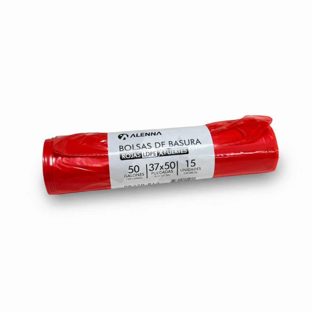 Fabricadas con polietileno de baja densidad (LDPE), estas bolsas son la solución ideal para entornos que requieren una resistencia superior y una identificación clara de los residuos. Su gran tamaño de 37×50 pulgadas (94×127 cm) y su capacidad de 55 galones (208 litros) las hacen perfectas para contener grandes volúmenes de basura pesada o voluminosa. Su distintivo color rojo es ideal para la segregación de desechos o para fines de seguridad, asegurando un manejo adecuado y organizado.