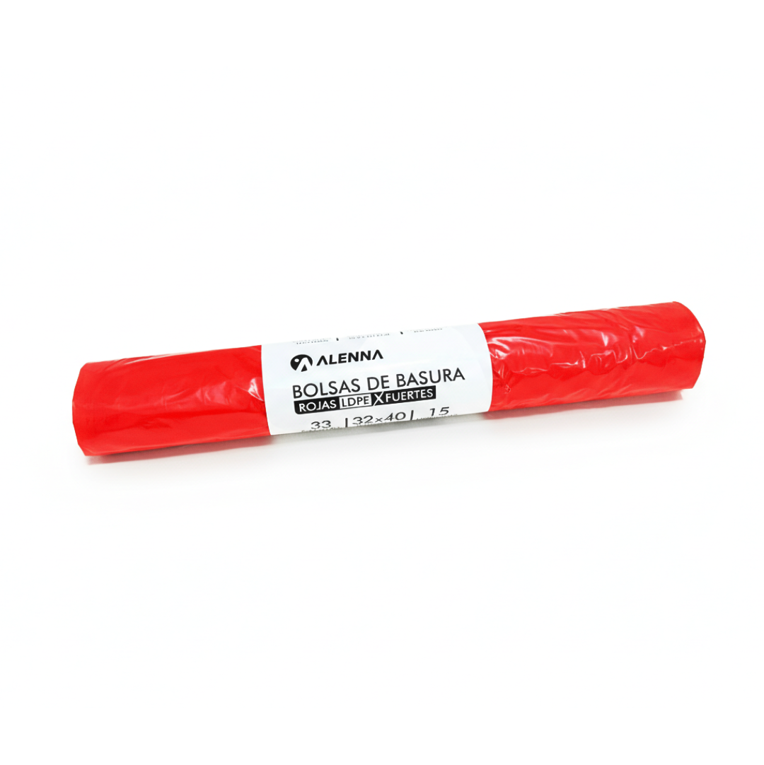 Fabricadas con polietileno de alta densidad (HDPE), estas bolsas son la solución ideal para entornos que requieren una resistencia superior y una identificación clara de los residuos. Su gran tamaño de 32×40 pulgadas (81×102 cm) y su capacidad de 32 galones (121 litros) las hacen perfectas para contener grandes volúmenes de basura pesada o voluminosa. Su distintivo color rojo es ideal para la segregación de desechos o para fines de seguridad, asegurando un manejo adecuado y organizado.